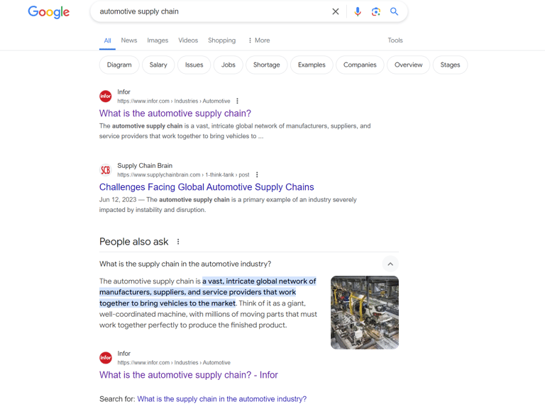 Auto industry supply chain (480 searches/month)